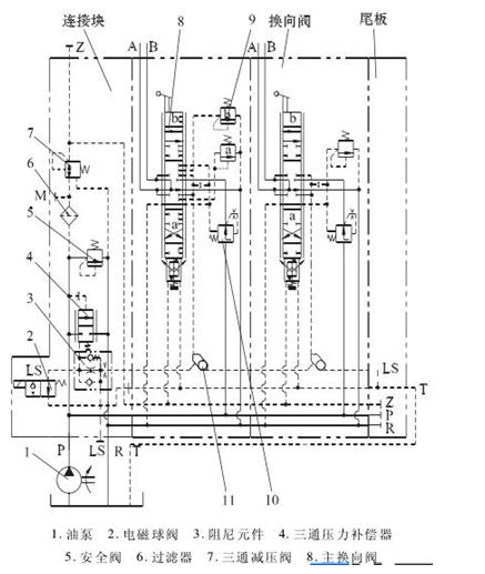 負載敏感比例多路換向閥因具有節能性好,比例控制易于實(shí)現遠程遙控,無(wú)級控制與負載變化無(wú)關(guān),可滿(mǎn)足多個(gè)執行元件在不同負載下同時(shí)工作等特點(diǎn)而廣泛應用于建筑、礦山、農業(yè)、等領(lǐng)域的工程機械以及船舶機械。本研究在分析負載敏感比例多路閥原理的基礎上,結合其內部結構特征對該閥使用中要注意的一些問(wèn)題進(jìn)行詳細解釋?zhuān)?**后結合多路閥的研究現狀對該閥技術(shù)特點(diǎn)進(jìn)行評述。
